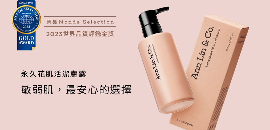 乾濕兩用的Ann Lin & Co.超強洗卸-永久花肌活潔膚露,除了選用天然成分而深受敏弱肌消費者喜愛,更榮獲【Monde Selection世界品質評鑑金獎】與通過【SGS國際級安全檢驗】,為消費者雙重把關!