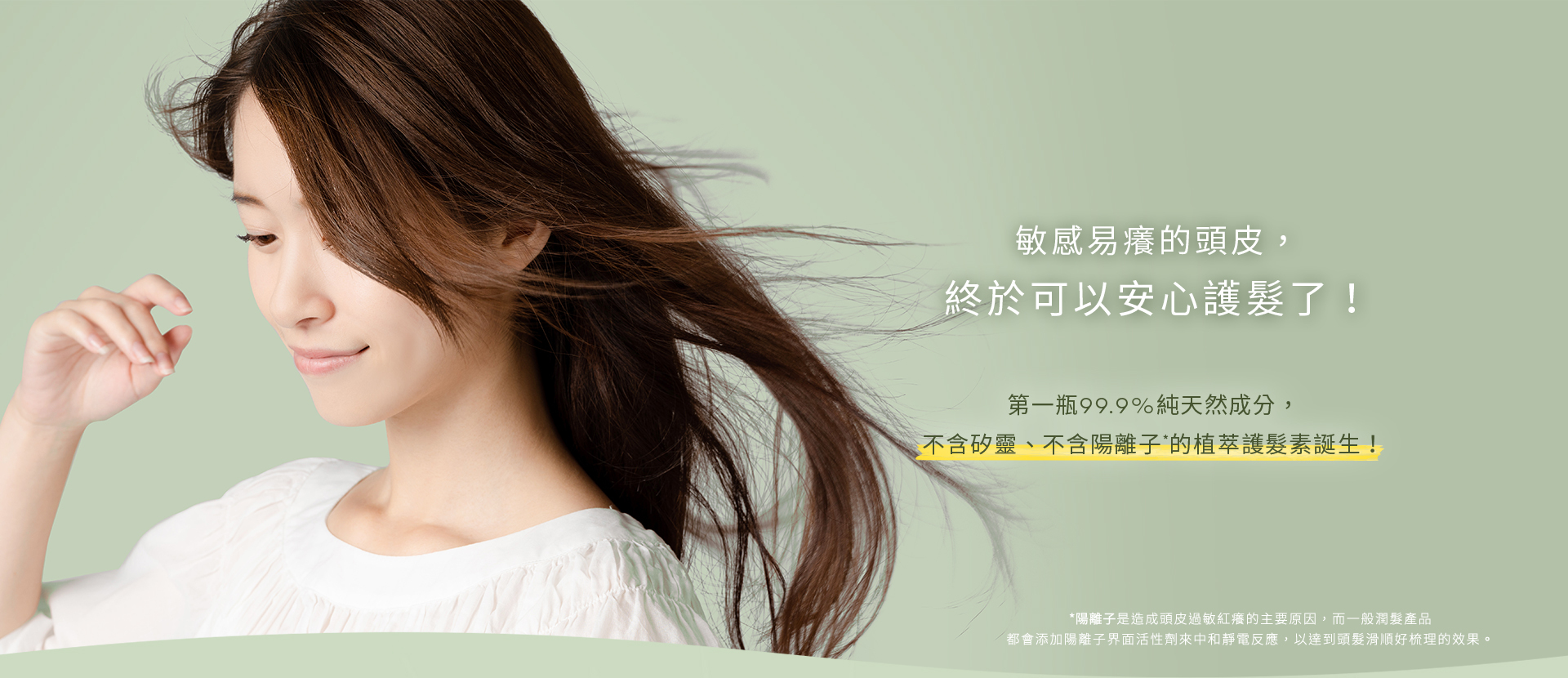 第一瓶純淨永續的抗敏護髮素修復髮質,同時保護頭皮