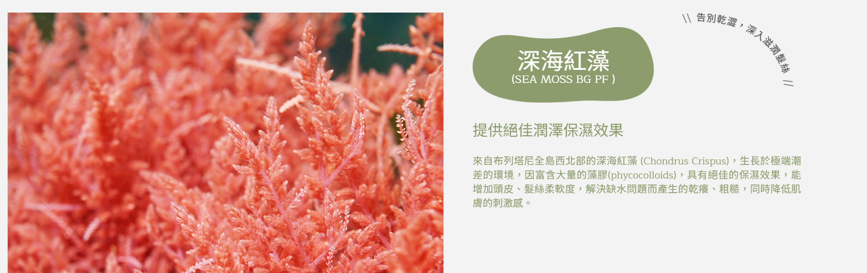 產品說明:溫和潔淨洗髮露,添加小野薑精萃、法國海洋露、海洋修護秀髮因子、淨化甘胺酸等成分調理平衡,幫助頭皮恢復健康初始狀態,提升髮絲光澤與強韌度。天然植萃配方無矽靈,各種髮質都適用。(搭配護髮素使用,髮質更柔順)